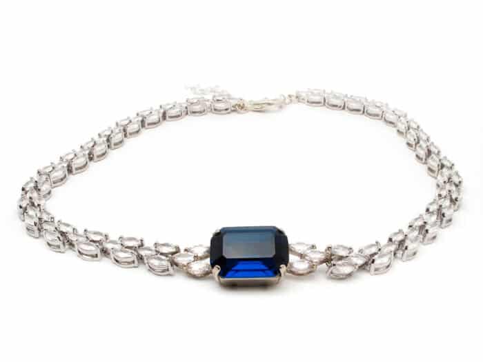 השרשרת עשויה פליז בציפוי כסף ומשובצת בזירקונים ואבני סברובסקי