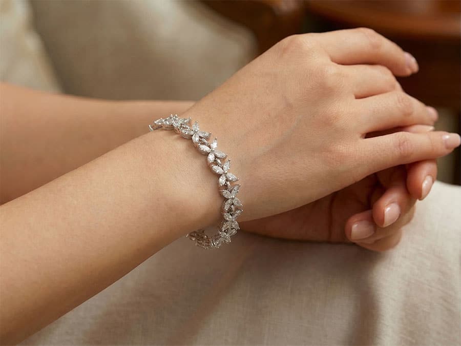 הצמיד מעוצב בסגנון פרחוני עדין, המורכב מרצף של פרחים