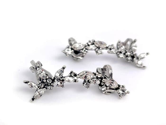מעוצב כעלה דק ומחודד שמתעקל בעדינות סביב האוזן, משובץ באבני סברובסקי® נוצצות שמוסיפות בדיוק את הנגיעה הנכונה – לא צעקני, אלא מדויק ומעודן.