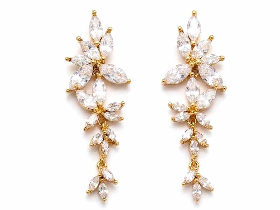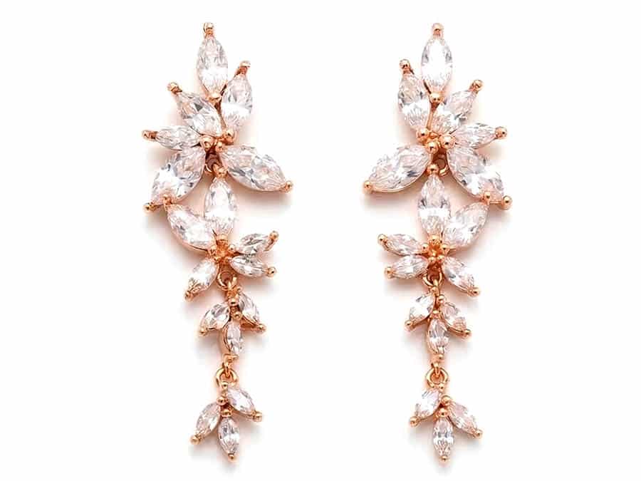 העגילים משבצים עשרות אבני סברובסקי איכותיות בחיתוך מרקיזה (Marquise) שיוצרות משחקי אור מנצנצים בכל תנועה.