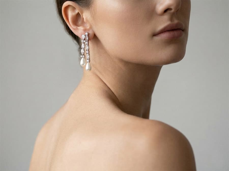 מסתיימים בטיפות פנינה  על בסיס כסוף/ זהב/רוז גולד. דרמטי,