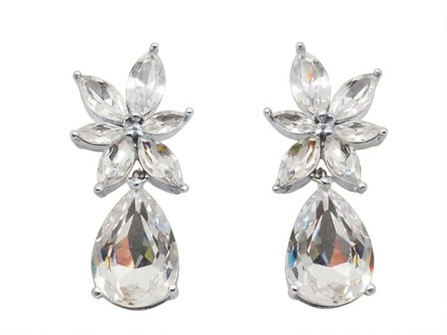 פרח קריסטל מבריק עם טיפת קריסטל תלויה, אבנים צלולות שמנצנצות כמו יהלומים.